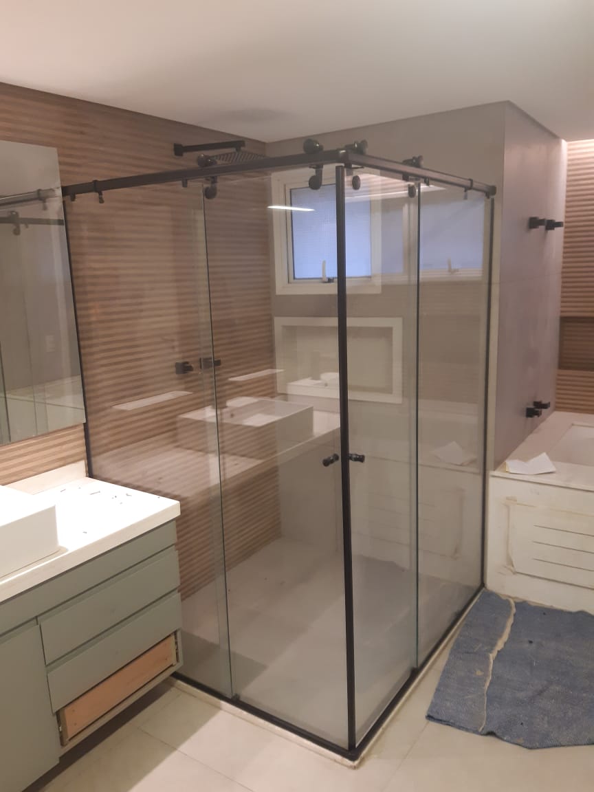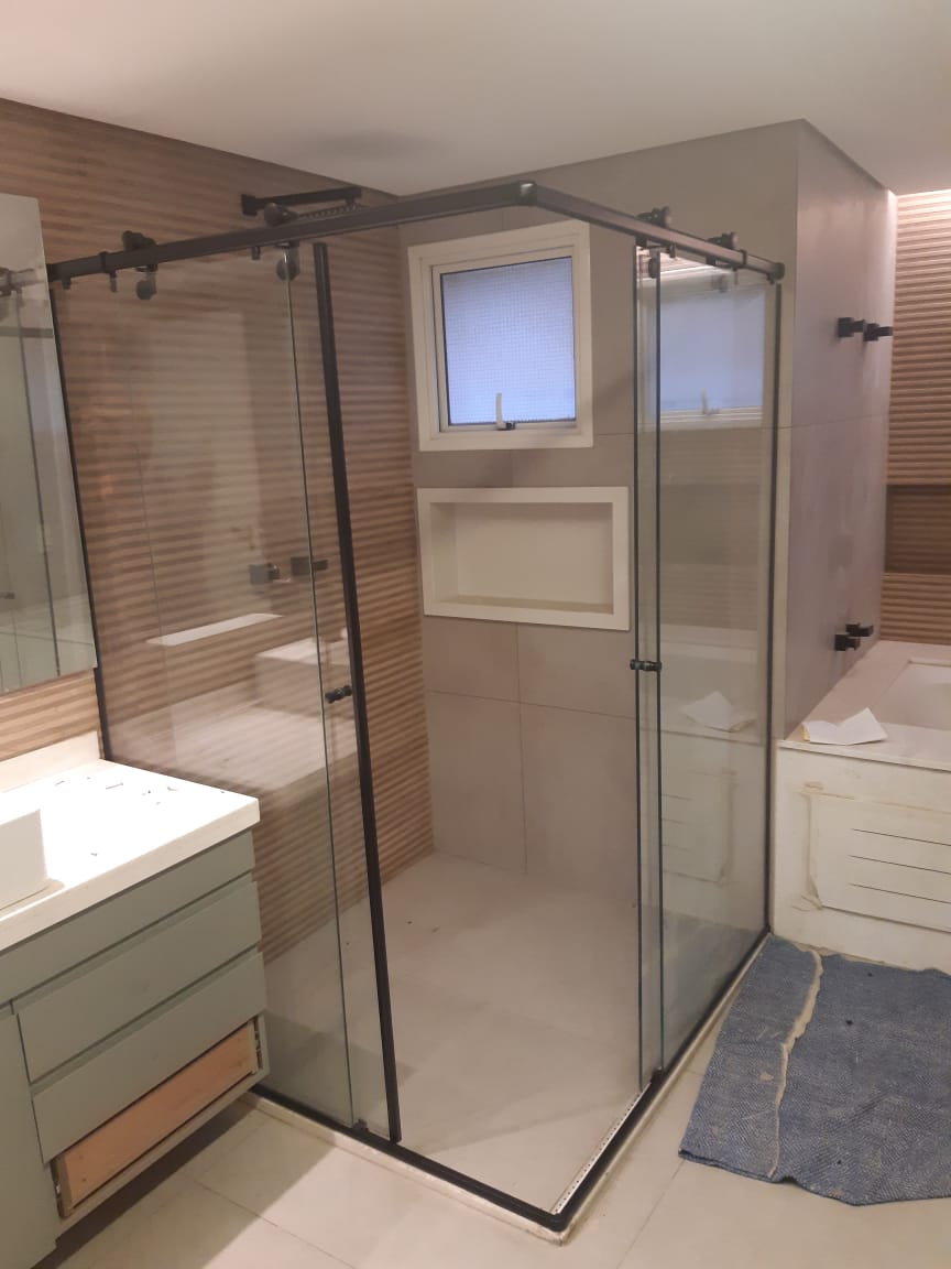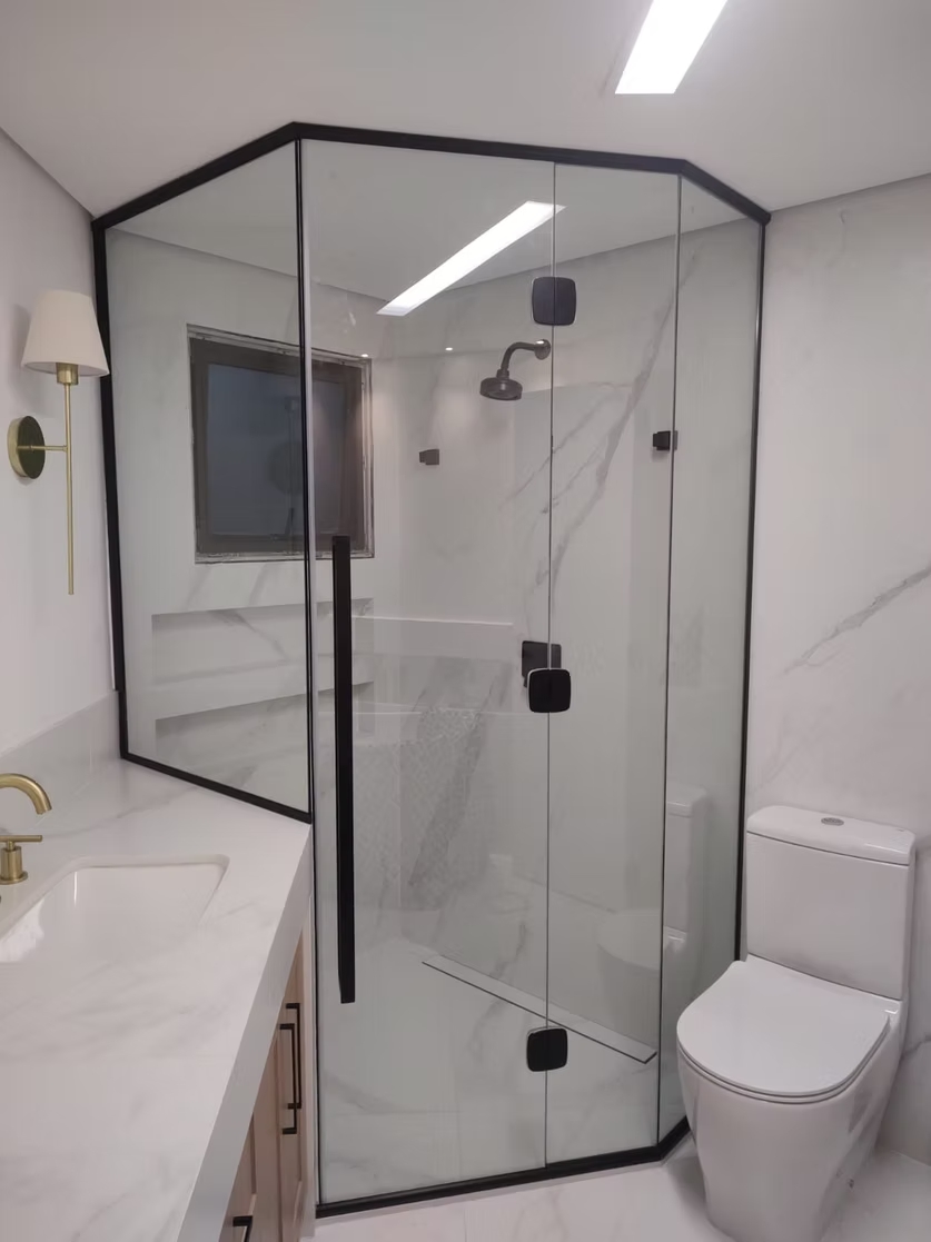 Na Agabê Projetos, oferecemos soluções personalizadas com diferentes modelos, acabamentos e sistemas de abertura, além de ferragens exclusivas e uma variedade de vidros que se adaptam ao estilo do seu banheiro. Todas as instalações seguem rigorosamente as normas da ABNT NBR 14207, utilizando vidro temperado de 8 mm para garantir qualidade e segurança.