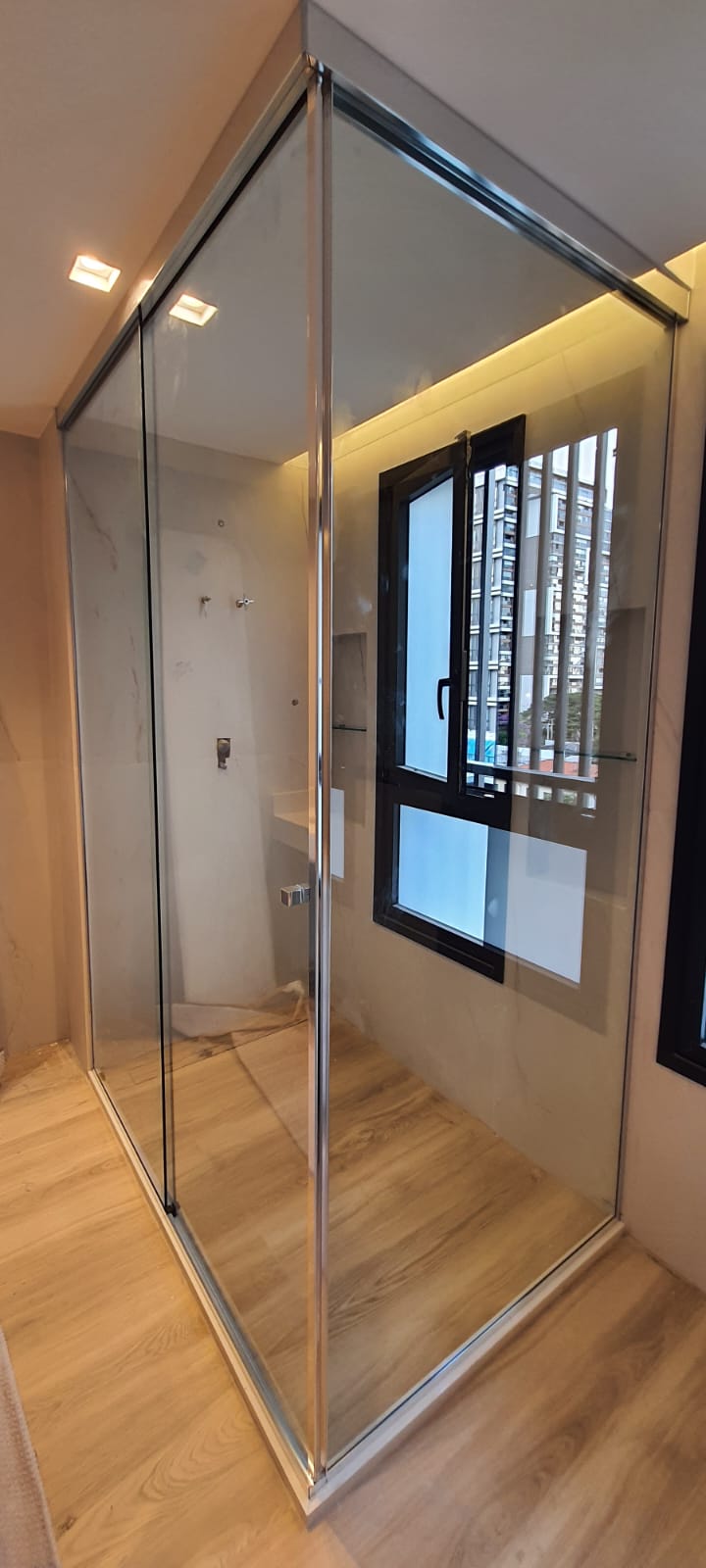 Para maior tranquilidade, disponibilizamos a opção de película de segurança, que reforça o vidro e aumenta a proteção no uso diário. Transforme seu banheiro em um verdadeiro refúgio de bem-estar com o box ideal para o seu projeto.